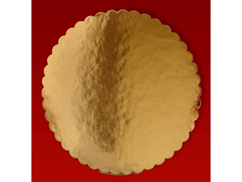Velmi pevná lepenková podložka s ozdobným okrajem, potažená oboustranně zlatou fólií odolnou proti vlhku a mastnotě.