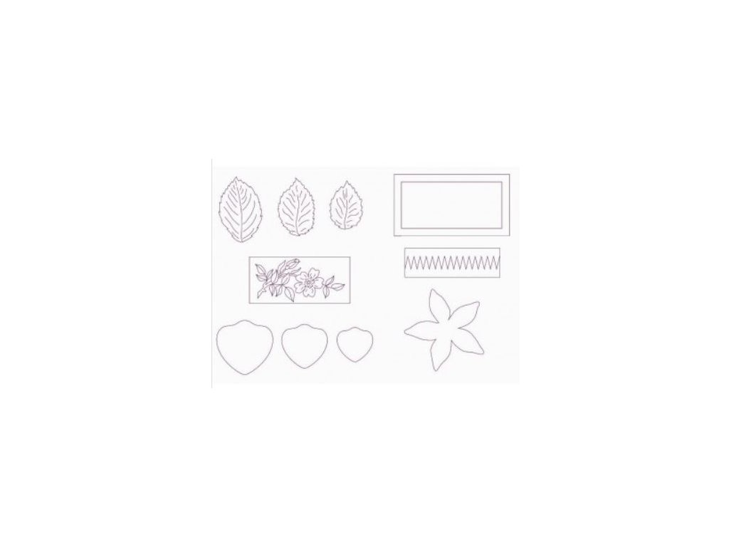 Tato sada obsahuje embossery a vykrajovače potřebné pro vytvoření krásné 3D růže /vč. návodu/. Souprava obsahuje i vykrajovátko na pestíky, 3 listy a boční panel, kam můžete umístit embossovanou růži nebo jmenovku. Hotová květina má průměr cca 8 cm.