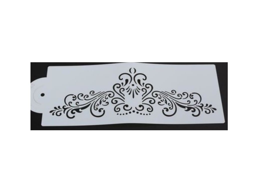 Pomocí stencilu můžeme vcelku rychle dosáhnout honosného vzhledu dortů - stačí přiložit stencilu /šablonu/ na okraj dortu a štětcem nanášíme barvu na vykrojených plochách. Poté lze ještě dozdobit např. královskou glazurou nebo jedlými fixami, příp. štětcem.