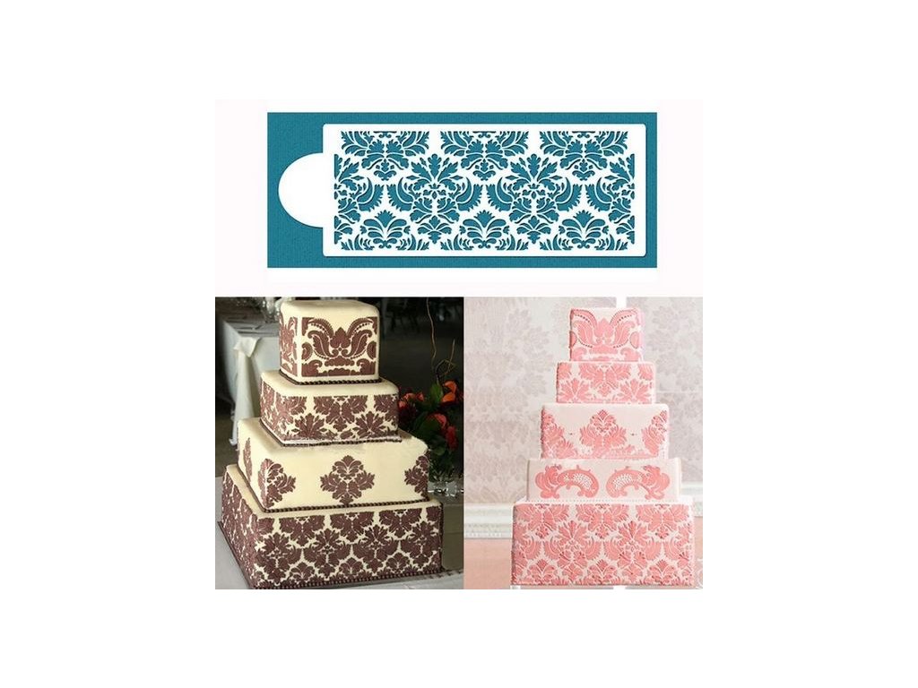 Pomocí stencilu můžeme vcelku rychle dosáhnout honosného vzhledu dortů - stačí přiložit stencilu /šablonu/ na okraj dortu a štětcem nanášíme barvu na vykrojených plochách. Poté lze ještě dozdobit např. královskou glazurou nebo jedlými fixami, příp. štětcem.