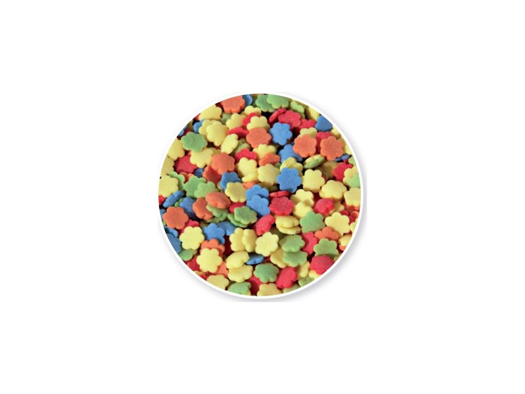 Složení: cukr, kukuřičný škrob, rafinovaný palmový olej, antioxidanty E304, E306; voda, bramborový škrob, rýžová mouka, vanilín, barviva E133, E100, E120.