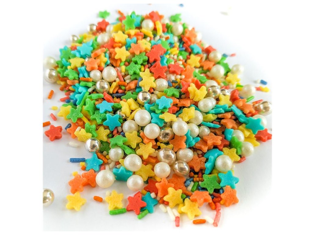 Složení: Cukr 88%, palmový olej, voda, bramborový škrob, rýžová mouka, invertáza, aroma vanilín, dextróza, glukózový sirup, leštící látka: šelak E904, regulátor kyselosti: kyselina citronová E330, aroma, sůl, kokosový olej neztužený, kukuřičný škrob, maltodextrin, arabská guma, neztužený palmový olej, emulgátor: sójový lecitin, protispékavá látka E553b, barviva E133, E100, E120, E171, E174, E131, E132, E160a, E172.