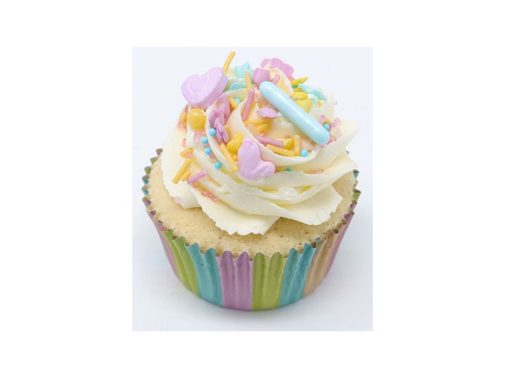 Složení: cukr, dextróza, kukuřičný škrob, rýžová mouka, dextrin, neztužený palmový tuk, xanthanová guma, emulgárot E572, barviva E120, E162, E133, E160c, E153, leštící látka: E903.