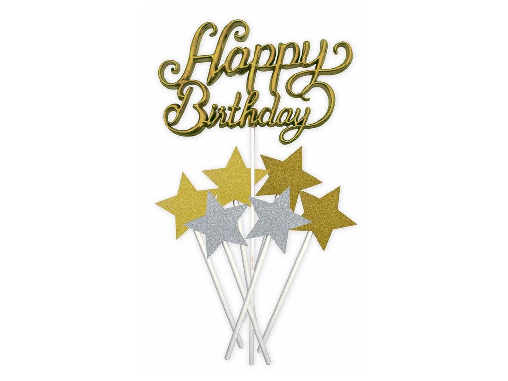 Zápich Happy Birthday zlatý