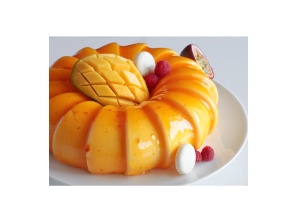 Glazé poleva s vysokým leskem oranžové barvy a svěží chutí tropického ovoce. Ideální pro letní a exoticky laděné dezerty, kterým dodá atraktivní vzhled i výraznou ovocnou chuť.